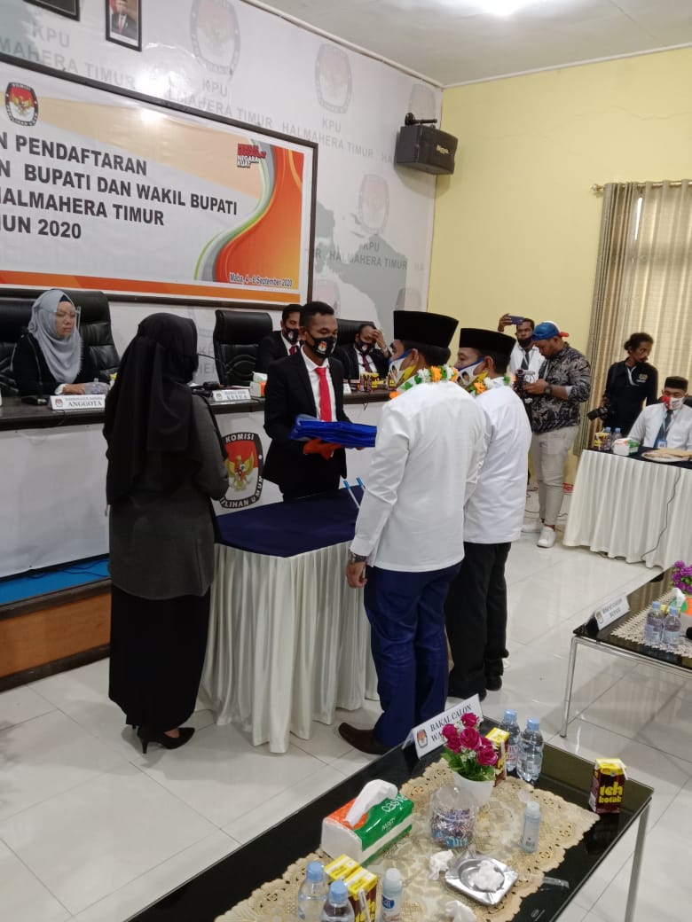 BeritaNasional.ID, Halmahera Timur – Pasangan calon cakada Halmahera Timur (Haltim) Hi Thaib Djalaludin-Noverius A.Bulango (Tiva Kemakmuran) berhasil mendaftar sebagai pasangan calon di Komisi Pemilihan Umum (KPU) Haltim, Jumat (4/9/2020).