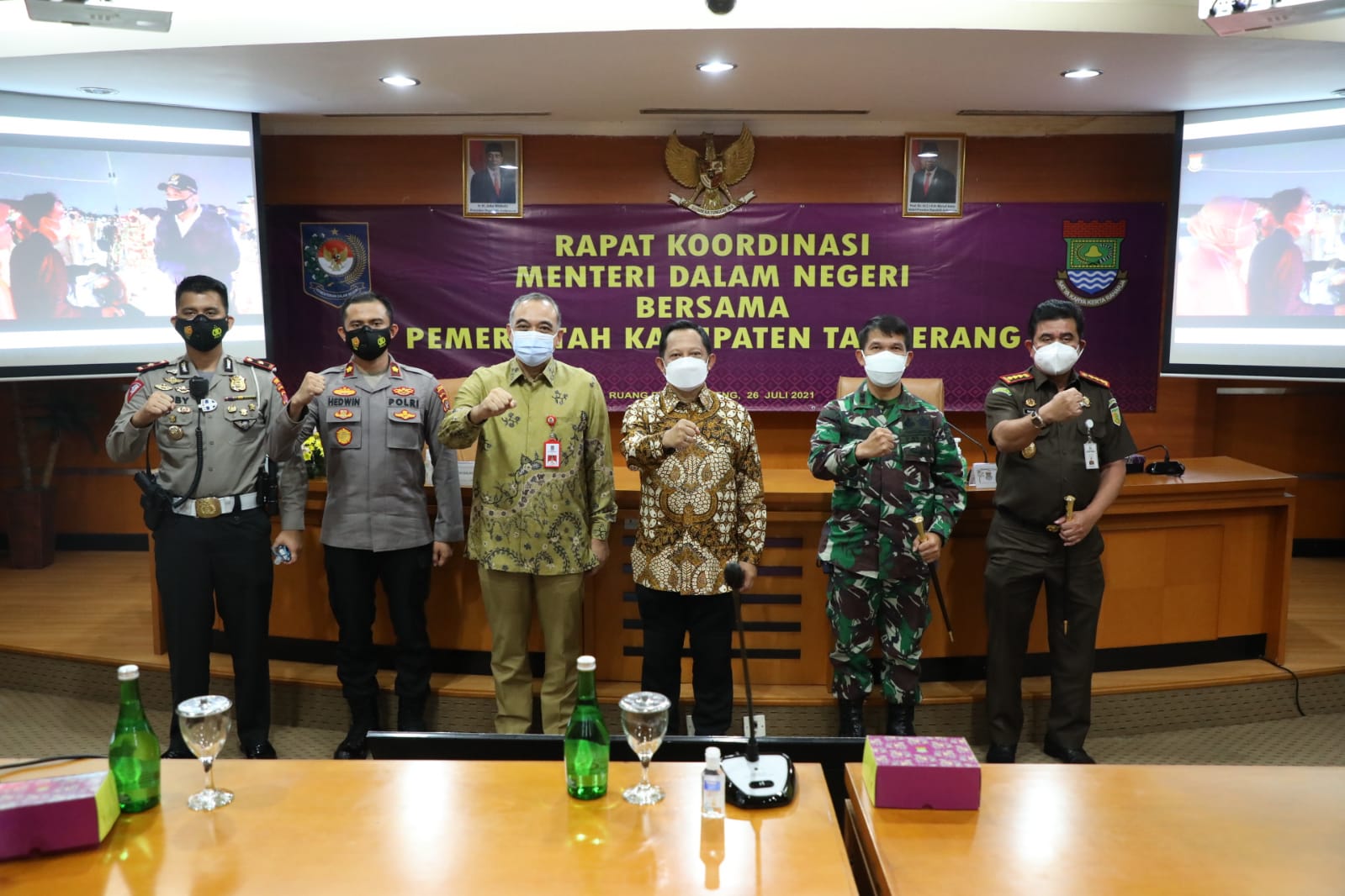 BeritaNasional.ID, Tangerang – Menteri Dalam Negeri (Mendagri) Muhammad Tito Karnavian mengapresiasi kekompakan Bupati Tangerang bersama Forum Koordinasi Pimpinan Daerah (Forkopimda) dalam menghadapi pandemi Covid-19. Hal itu diungkapkannya usai melakukan Rapat Koordinasi di Kantor Bupati Tangerang, Provinsi Banten, Senin (26/7/2021).