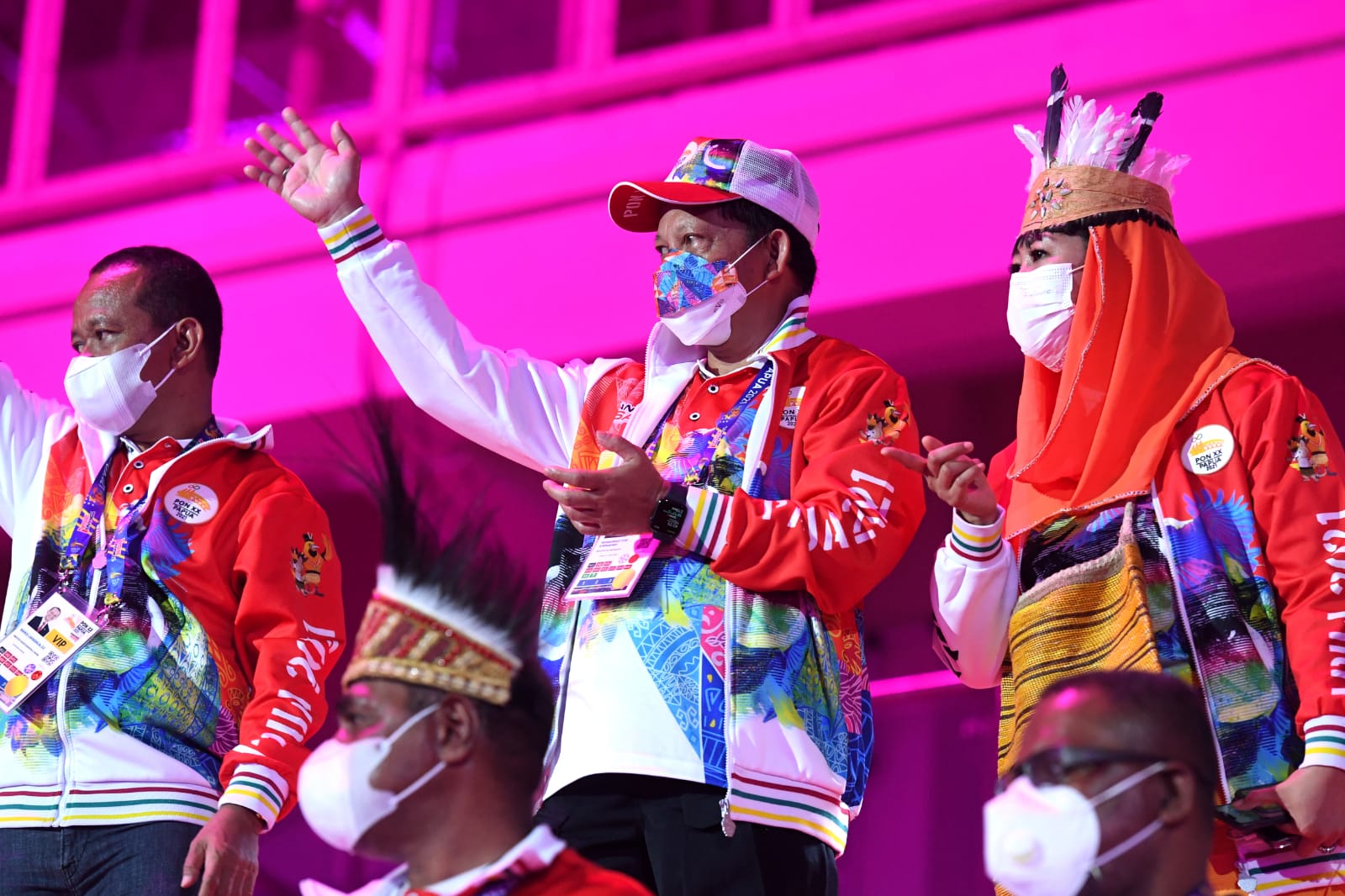 Presiden hadir dengan mengenakan seragam khas PON Papua yang didominasi warna putih berpadu dengan merah. Seragam tersebut juga dikenakan oleh Mendagri, termasuk jajaran kabinet dan pejabat terkait lainnya yang turut hadir dalam kegiatan tersebut. Presiden membuka gelaran itu, di akhir kata-kata sambutannya.