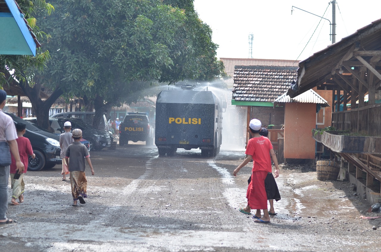 Selain dilakukan oleh sekitar 50 orang satgas gabungan TNI Polri, BPBD, PMI dan Satpol PP serta Polwan, penyemprotan cairan disinfektan dilakukan dengan menggunakan water canon milik Polres Situbondo.