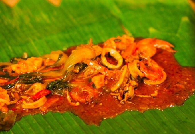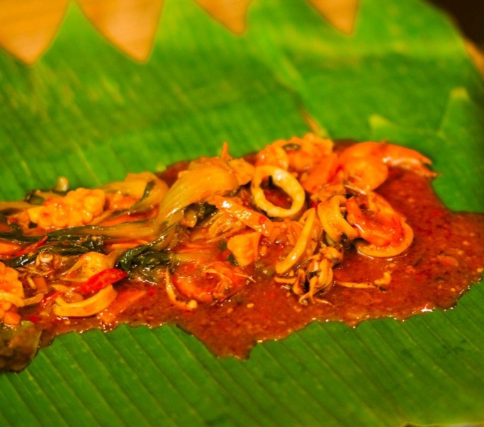 Kenikmatan seafood tumpah ini dari cita rasa bumbu yang lezat dan bikin nagih. Seafood tumpah langsung disajikan di depan tamu yang langsung ditumpahkan di atas daun pisang. Makannya panas-panas didampingi nasi putih pasti bikin kenyang. Tak lupa ada es teh, seger pastinya. Seafood Tumpah bisa di makan berEMPAT dengan harga Rp.500.000/nett.