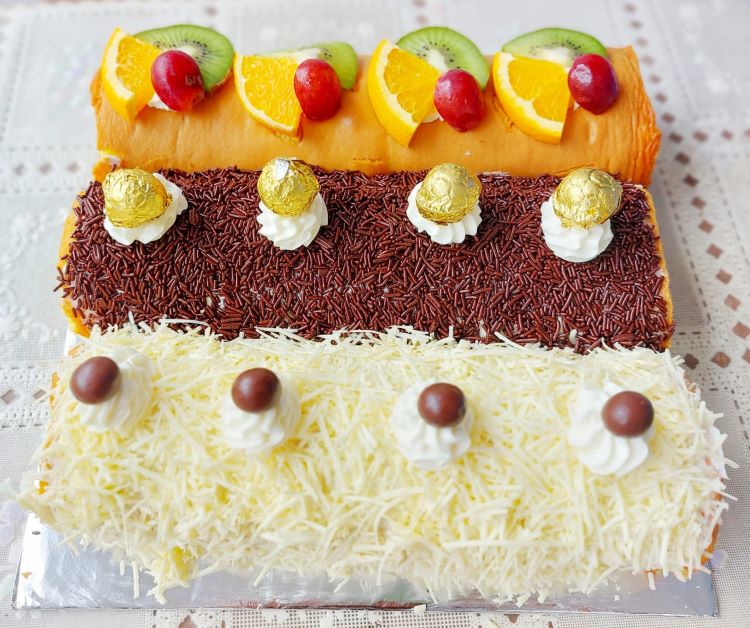 Namun yang membedakan pembuatan kue ini, imbuh Yuanita, yaitu dalam penyajiannya pembuatan kue pada umumnya pada topingnya menggunakan coklat dan keju. Tapi, di rumah industri Jajane Nita, khusus menjelang Imlek, toping menggunakan buah segar yang identik dengan warna merah, seperti strowberry, Cerry, Anggur merah dan selanjutnya di tabur parutan coklat dan keju.