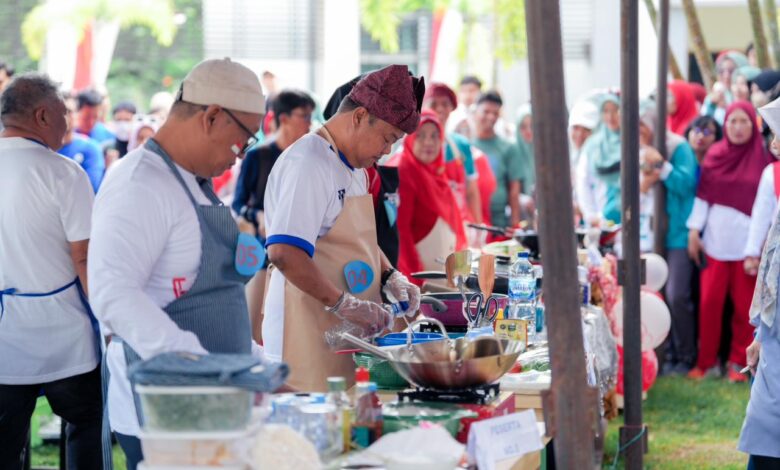 Di halaman kantor gubernur pecah oleh tawa. Satu per satu kepala OPD berusaha menaklukkan lomba makan kerupuk yang bikin penonton terpingkal. Usai itu, mereka langsung pindah ke arena lomba masak nasi goreng yang tak kalah heboh.