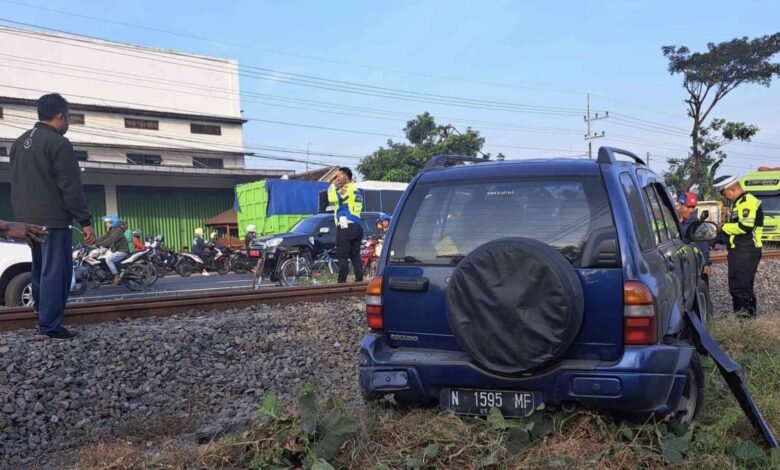 Selanjutnya kendaraan sepeda motor dan pengendara Noer terjatuh sedangkan kendaraan R4 Suzuki Escudo oleng ke kiri utara jalan masuk dan berhenti melintang di atas rel kereta api.