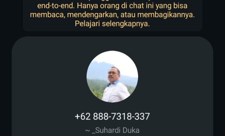 “Hati-hati jika ada yang menghubungi via WhatsApp atau telepon, mengatasnamakan Bapak Gubernur untuk memberikan bantuan. Karena ada yang mencatut nama Bapak Gubernur, dengan nomor kontak +62 8887318337, dengan modus meminta bantuan untuk membiayai suatu kegiatan,” bebernya.