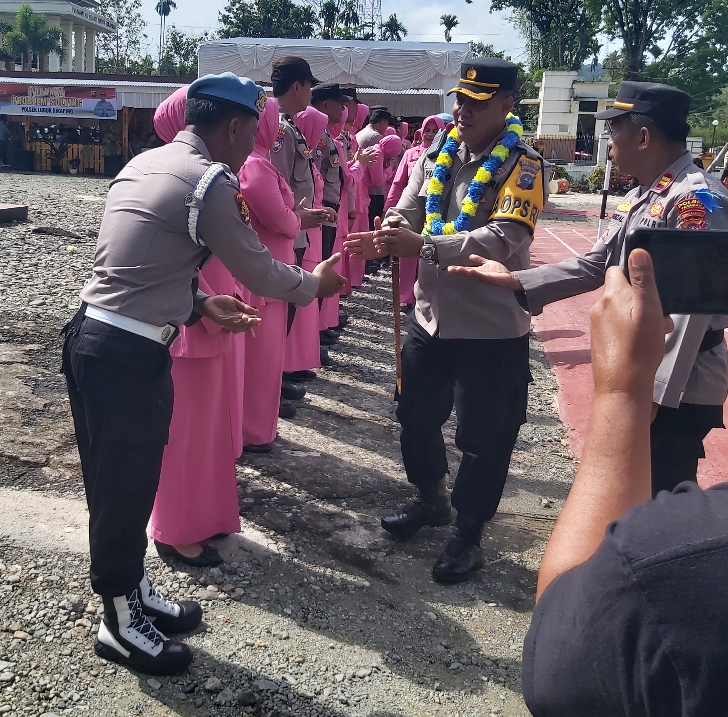 Kunjungan Kapolres yang didampingi ketua Bhayangkary Cabang Pasaman, Ny. Novita Yudho, ke Polsek Lubuk Sikaping, disambut Kapolsek Lubuksikaping, Ketua Ranting Bhayangkari dan Personil Polsek Lubuksikaping, Camat, Danramil, Walinagari, Ketua Bamus, Ketua KAN sekecamatan Lubuk Sikaping, dan tokoh masyarakat setempat.