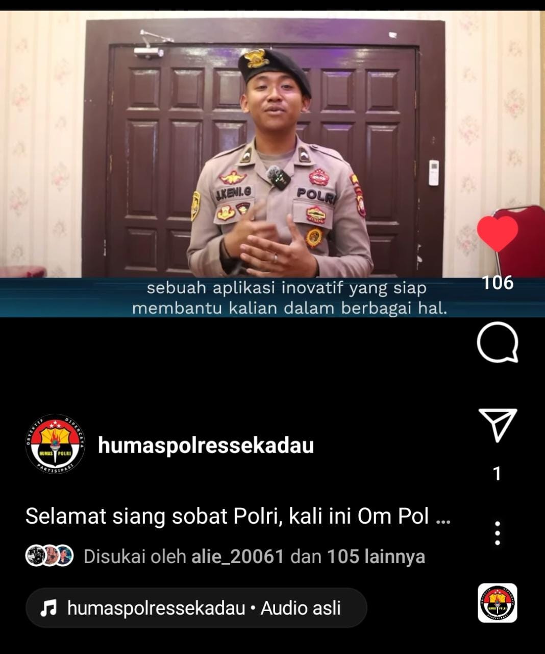 Pesan edukatif yang disampaikan oleh Bripda Keni ini menunjukkan upaya Polres Sekadau dalam memberikan pelayanan yang terdepan dengan memanfaatkan teknologi digital. (Aji)