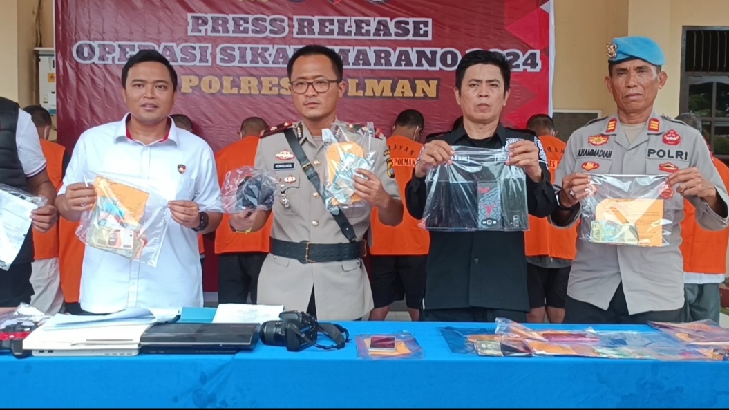 ” Sebanyak 26 kasus kriminal kita ungkap, dua target operasi, 24 pelaku kita tangkap dan jadi tersangka,” Jelas Wakapolres Polman, Kompol Kemas Aidil Fitri kepada wartawan.