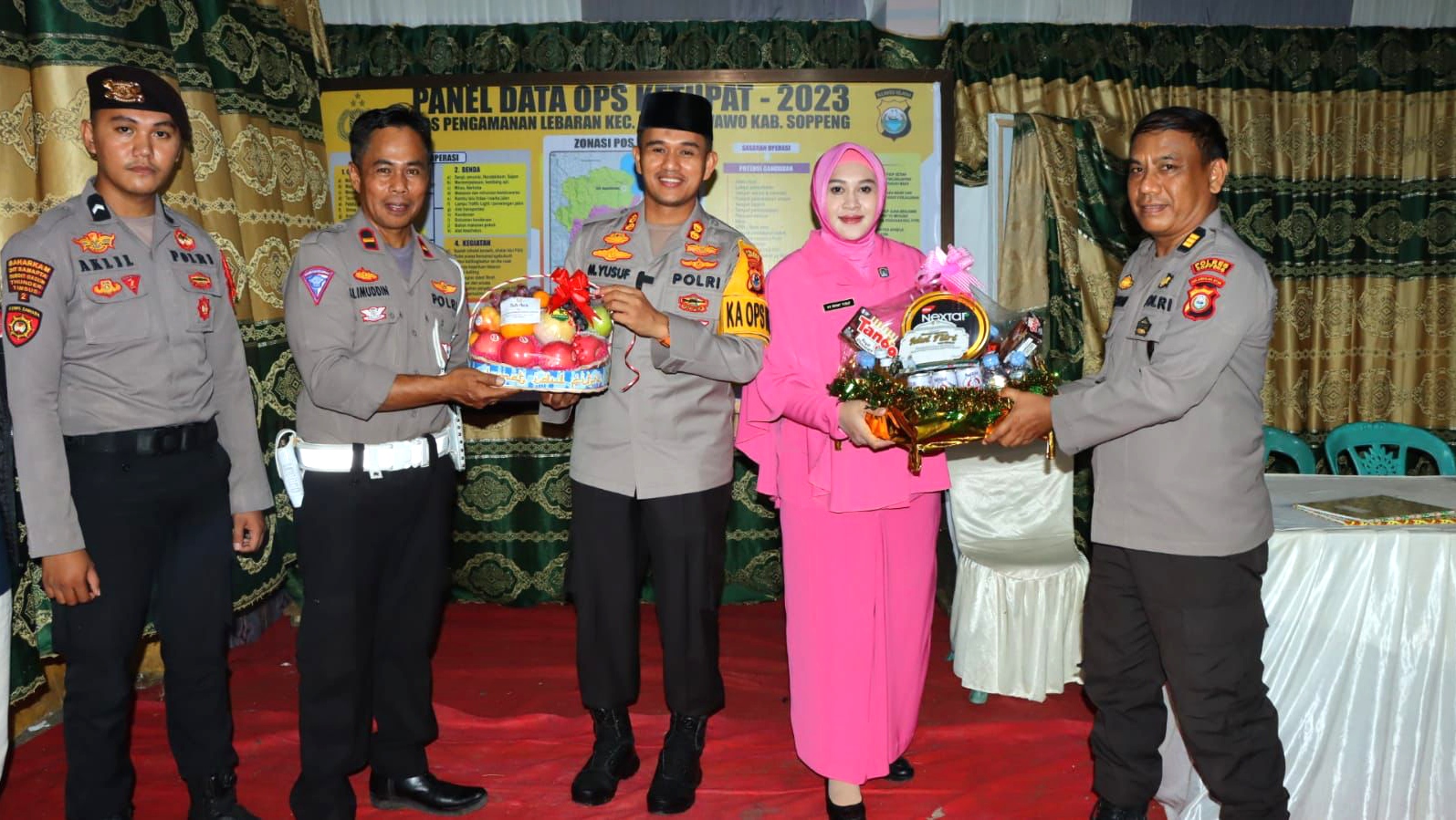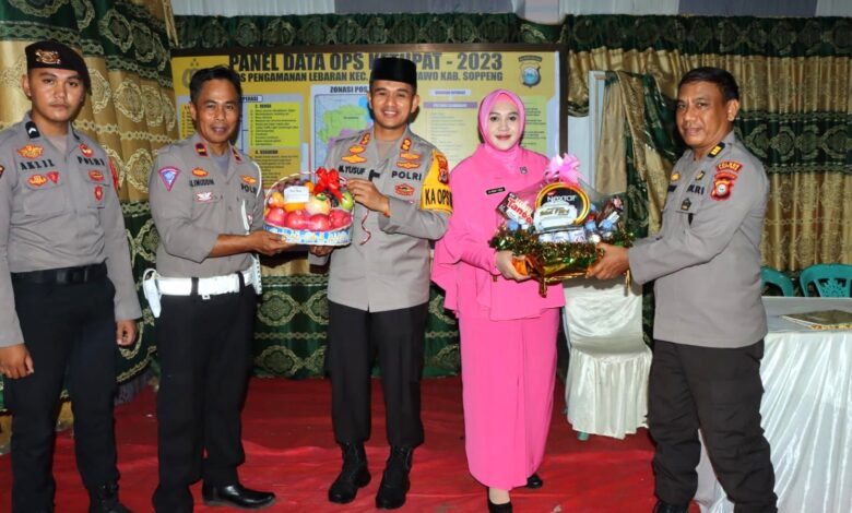 SOPPENG– Kapolres Soppeng AKBP Dr. (C) H. Muhammad Yusuf Usman bersama Ketua Bhayangkari Ny. Denny Yusuf mengunjungi Pos Pam Ketupat 2023 diwilayah hukum Polres Soppeng, Kamis 20 April 2023.