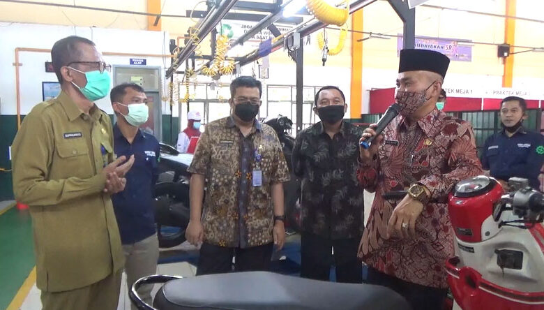 BeritaNasional.ID, Magetan – Kepala Dinas Provinsi Jawa Timur didampingi Bupati Magetan hadiri Pameran Produk SMA/ SMK Double Track Cabang Dinas Pendidikan Wilayah Ponorogo, Magetan yang digelar di SMK Negeri 1 Bendo Magetan, Selasa 16 Februari 2021