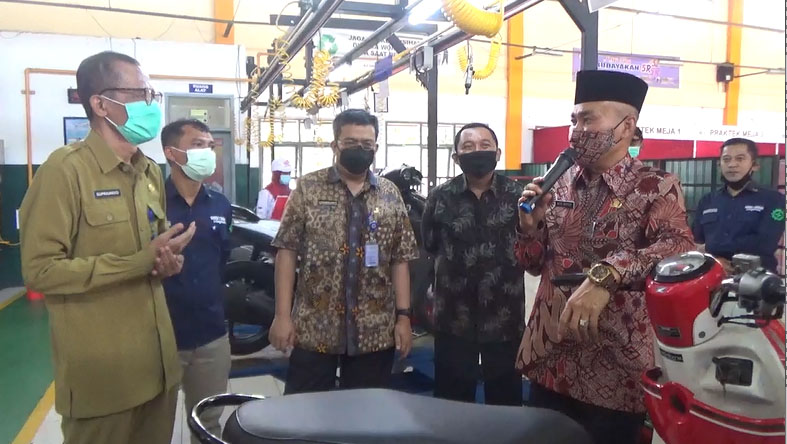 Sementara itu, Kepala Dinas Pendidikan Provinsi Jawa Timur Dr. Ir. Wahid Wahyudi, MT mengatakan kunjunganya kali ini untuk memonitor pelaksanaan pembelajaran yang menyangkut praktikum, karena Siswa SMK tidak bisa hanya dilakukan pembelajaran jarak jauh butuh tatap muka untuk praktek, oleh karena itu, Kepala Dinas Pendidikan Provinsi Jawa Timur meminta kepada para guru untuk mempersiapkan modul pembelajaran jarak jauh sehingga siswa saat masuk ke ruangan praktek sudah memilki bekal