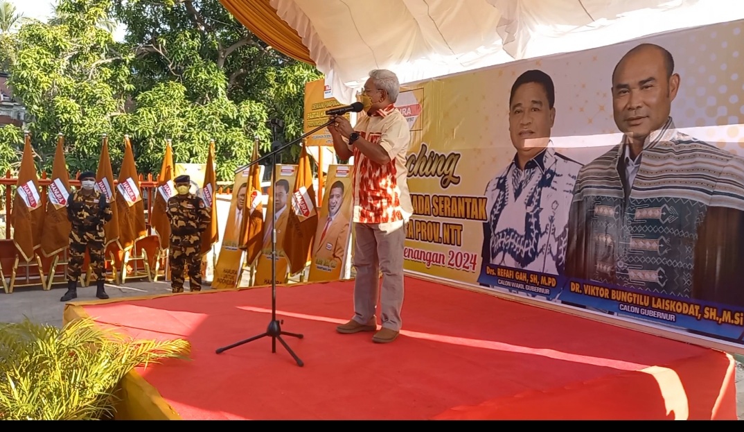 Ketua DPD Hanura Provinsi Nusa Tenggara Timur, Drs. Rafafi Gah, SH,M.Pd dalam sambutannya mengatakan, Hanura merupakan satu-satunya partai politik yang saat ini Roda dan mesin partai bergerak di seluruh wilayah NTT, dan untuk itu kegiatan launching calon kepala daerah dan wakil kepala daerah merupakan satu komitmen besar partai dalam menjalankan amanah dan kiprah partai dalam pengkaderan atau pemilahan dan pemilihan calon kepala dan wakil kepala daerah baik dari calon gubernur, bupati dan wakil bupati.