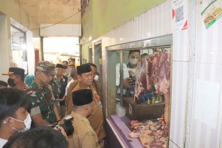 BeritaNasional.ID – Situbondo Jawa Timur,  Bupati Situbondo, Drs Karna Suswandi, Dandim 0823 Situbondo Letkol Inf Bayu Anjas Asmoro, S.E, Wakapolres Situbondo Kompol Pujiarto SH bersama Jajaran Forum Koordinasi Pimpinan Daerah (Forkopimda) Kabupaten Situbondo lainnya melakukan Inspeksi Mendadak (Sidak) Bahan Kebutuhan Pokok Pangan di Pasar Panji dan Ardirejo, Kecamatan Panji, Kabupaten Situbondo, Senin (3/4/2023).