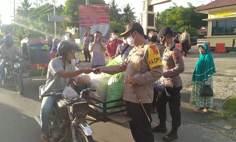 BeritaNasional.ID Medan – Kapolres Madina AKBP Horas Tua Silalahi, S.I.K, M.Si memimpin kegiatan bagikan masker juga makanan dan takjil kepada para pengemudi kendaraan bermotor untuk berbuka puasa, Senin (4/5/2020).
