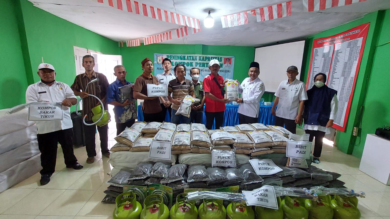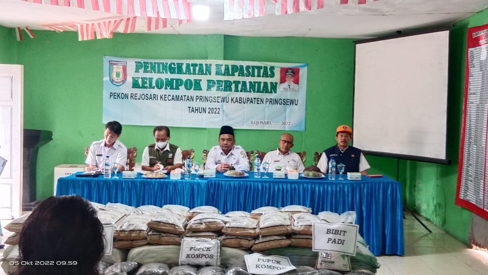 Penyerahan bibit, pupuk serta peralatan kompor pembasmi tikus tersebut dilaksanakan di kantor Pekon Rejosari, diserahkan langsung kepada 5 kelompok tani Pekon setempat.