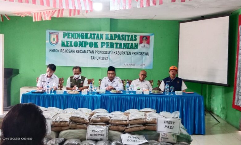 ” Adapun penyerahan bibit, pupuk serta peralatan pembasmi tikus kami serahkan langsung kepada 5 kelompok tani, yang mana nantinya akan kembali dibagikan kepada masing-masing anggota mereka (Poktan), “ungkap Khotmanudin kepala Pekon Rejosari, di sela acara sosialisasi peningkatan kapasitas kelompok tani Pekon Rejosari, Rabu (5/10/22).