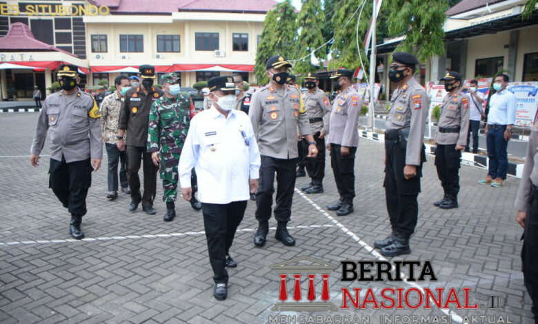 BeritaNasional.ID, SITUBONDO – Dalam rangka pelaksanaan PPKM Darurat, Polres Situbondo Gelar apel pasukan yang dipimpin oleh Bupati Situbondo, Drs. H. Karna Suswandi, M.M. Hadir dalam apel tersebut diantaranya, Kapolres AKBP Ach. Imam Rifai, S.H., S.I.K., M.PICT., M.ISS., Dandim 0823 Letkol Inf. Neggy Kuntagina, S.I.P, Kajari Iwan Setiawan, SH., M.Hum., dan Pejabat Intsnasi terkait. Sedangkan pasukan apel terdiri dari anggota Polres, Kodim 0823, Dishub dan Satpol PP, Sabtu (3/7/2021).