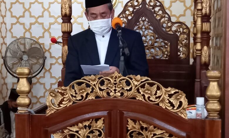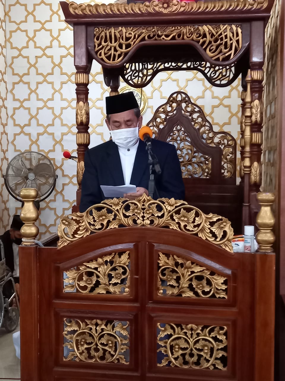 Dalam sambutan singkatnya, Dollah Mando mengimbau jemaah tetap menerapkan protokol kesehatan Covid-19 dengan memakai masker, menjaga jarak dan mencuci tangan.