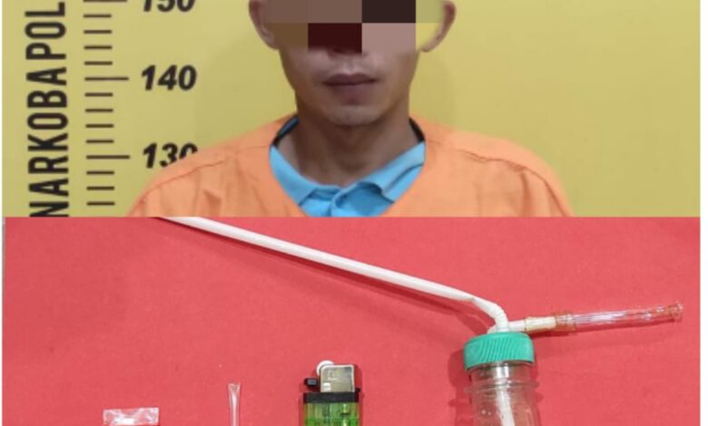 Pelaku RM, lanjutnya, ditanggkap karena memiliki atau menguasai Narkotika Gol I Jenis sabu dan ditemukan barang berupa 1 paket sabu dalam plastik klip kecil berat 0,30 gram, 1 (seperangkat) alat Bong, 1 potong sedotan berwarna bening dan 1 buah korek api,” terangnya.