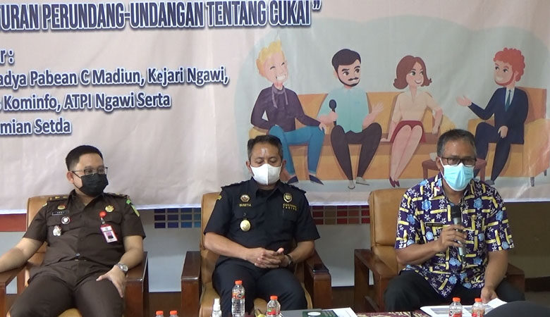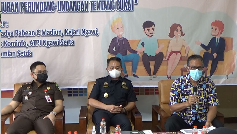 BeritaNasional.ID, Ngawi – Pemerintah Kabupaten Ngawi, melakukan Sosialisasi Ketentuan Perundang-undangan di Bidang Cukai pemanfaatan Dana Bagi Hasil Cukai Hasil Tembakau (DBHCHT) kepada masyarakat dan pemangku kepentingan di Aula Radio Suara Ngawi, Kamis (24/6/2021)