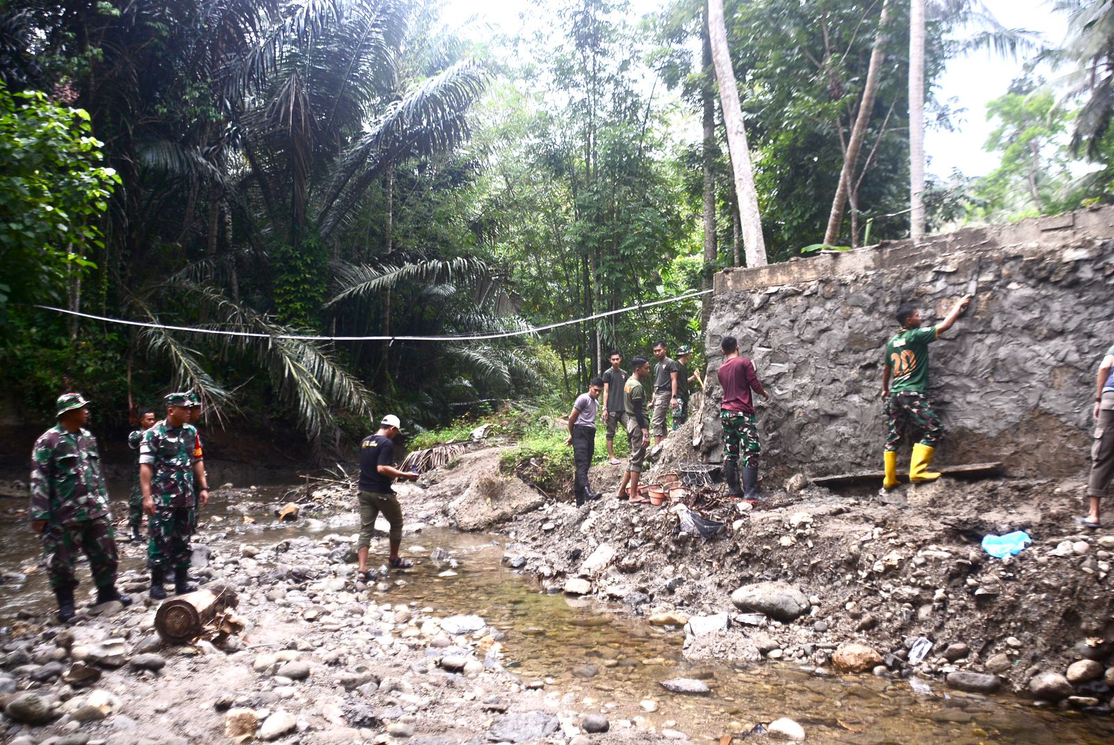 “Abutment jembatan sudah dikerjakan saat Pra TMMD, dan saat ini tinggal merapikan plesteran,” Jelas Letkol Masni.