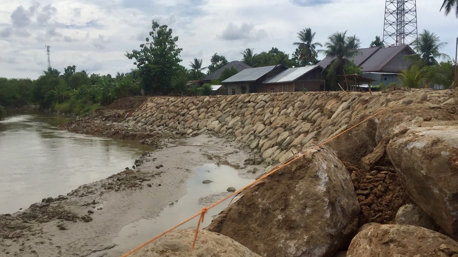 BeritaNasional.ID | Aceh Utara – Pembangunan tanggul pengaman banjir yang terletak di Desa Mancang, Kecamatan Samudera, Kabupaten Aceh Utara dengan pagu anggaran 2 milyar lebih terkesan di bangun asal jadi.