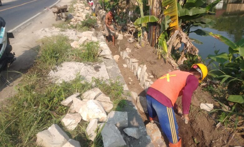 Saat media ini mencoba melihat proses pemasangan batu pondasi drainase tersebut dilakukan tidak seperti umumnya pemasangan batu pondasi seperti tidak adanya penggalian tapak/ sepatuan serta tidak adanya pasir hampar sebagai dasar pemasangan batu, diperparah pasangan pondasi hanya satu batu menempel pada dinding tanah.