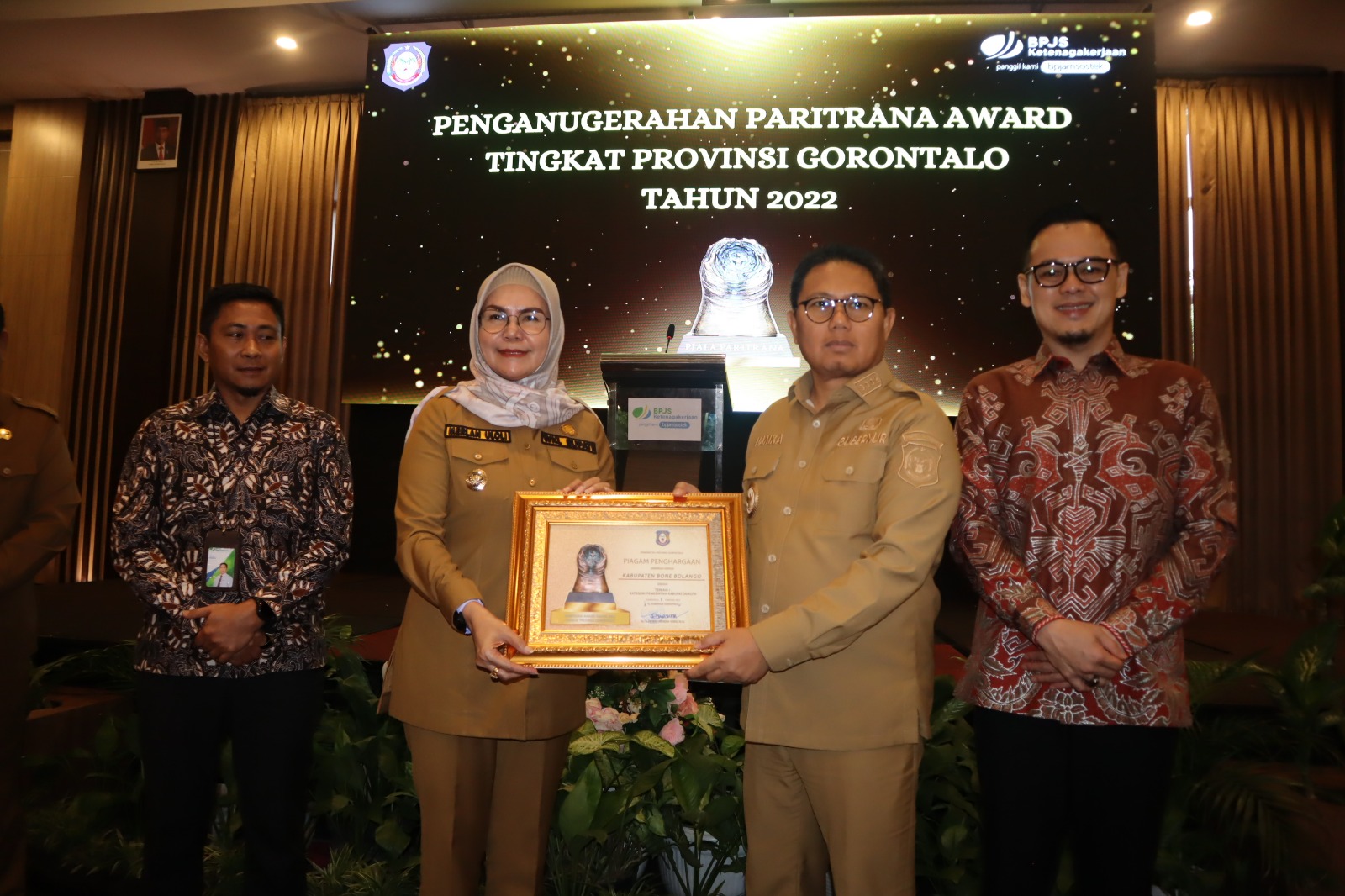 BeritaNasional.ID, Gorontalo – Komitmen Pemerintah Daerah Kabupaten Bone Bolango dalam memberikan perlindungan kepada pekerja di Kabupaten Bone Bolango mendapatkan apresiasi dari BPJS Ketenagakerjaan melalui penganugerahan Paritrana Awards Tahun 2022 yang digelar oleh BPJS Ketenagakerjaan Cabang Gorontalo di Hotel Aston Kota Gorontalo, Selasa (7/3/2023).