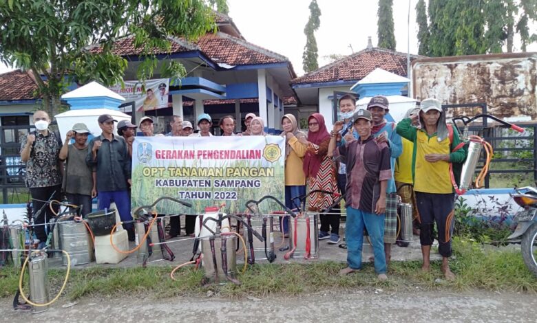 Kali ini petugas Pelatihan Hama Penyakit Tanaman Pangan dan Holtikultura ( PHPTPH) Laburaturium Pamekasan dan Petugas Organisme Pengganggu Tanaman (POPT) Kecamatan Jrengik Sreseh bersama Balai Penyuluhan Pertanian ( BPP ) Kecamatan Jrengik melakukan giat penyemprotan yang berlokasi di area persawahan depan Balai Desa Panyepen Kamis (19/05/2022).