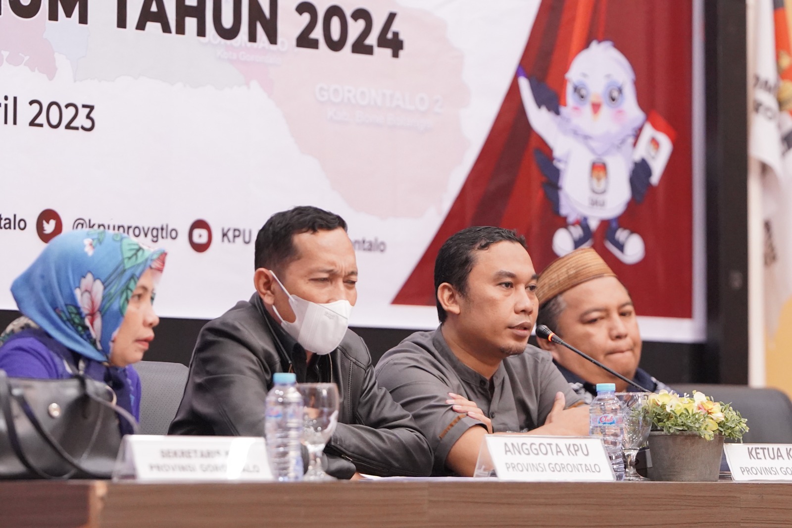 Anggota KPU Provinsi Gorontalo Ramli Ondang Djau mewakili Ketua KPU Provinsi Gorontalo Fadliyanto Koem dalam paparannya mengatakan bahwa pada Pemilu tahun 2024 nanti, untuk Dapil dan Alokasi kursi Anggota DPRD Provinsi Gorontalo sendiri tidak berubah dari Pemilu tahun 2019 yang lalu, yaitu Dapil 1 Kota Gorontalo dengan alokasi 8 kursi dan Dapil 2 Kabupaten Bone Bolango dengan alokasi 6 kursi. Untuk Dapil 3 Kabupaten Gorontalo A dengan alokasi 9 kursi sementara untuk Dapil 4 Kabupaten Gorontalo B dengan alokasi 6 kursi. Selanjutnya Dapil 5 Kabupaten Gorontalo Utara dengan alokasi 5 kursi dan Dapil 6 Kabupaten Boalemo dan Pohuwato dengan alokasi 11 kursi.