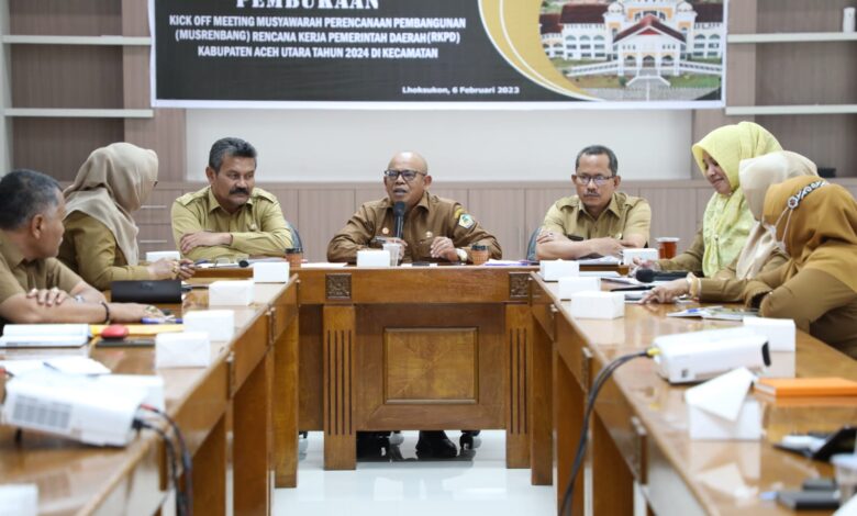 BeritaNasional.ID | Aceh Utara – Pemerintah Kabupaten Aceh Utara menggelar kegiatan kick off meeting menjelang pelaksanaan Musyawarah Perencanaan Pembangunan (Musrenbang) Rencana Kerja Pemerintah Daerah (RKPD) 2024.