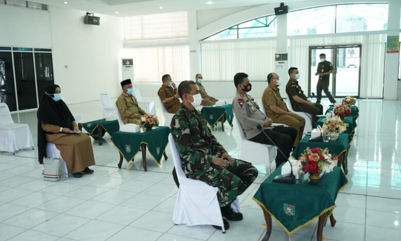 BeritaNasional.ID, Kisaran – Pemerintah Kabupaten Asahan mengikuti Rapat Koordinasi (Rakor) dengan sejumlah Menteri terkait Penegakan Disiplin Protokol Kesehatan dan Penanganan Covid – 19 secara virtual, Senin (03/05/2021) di aula Melati kantor Bupati setempat.