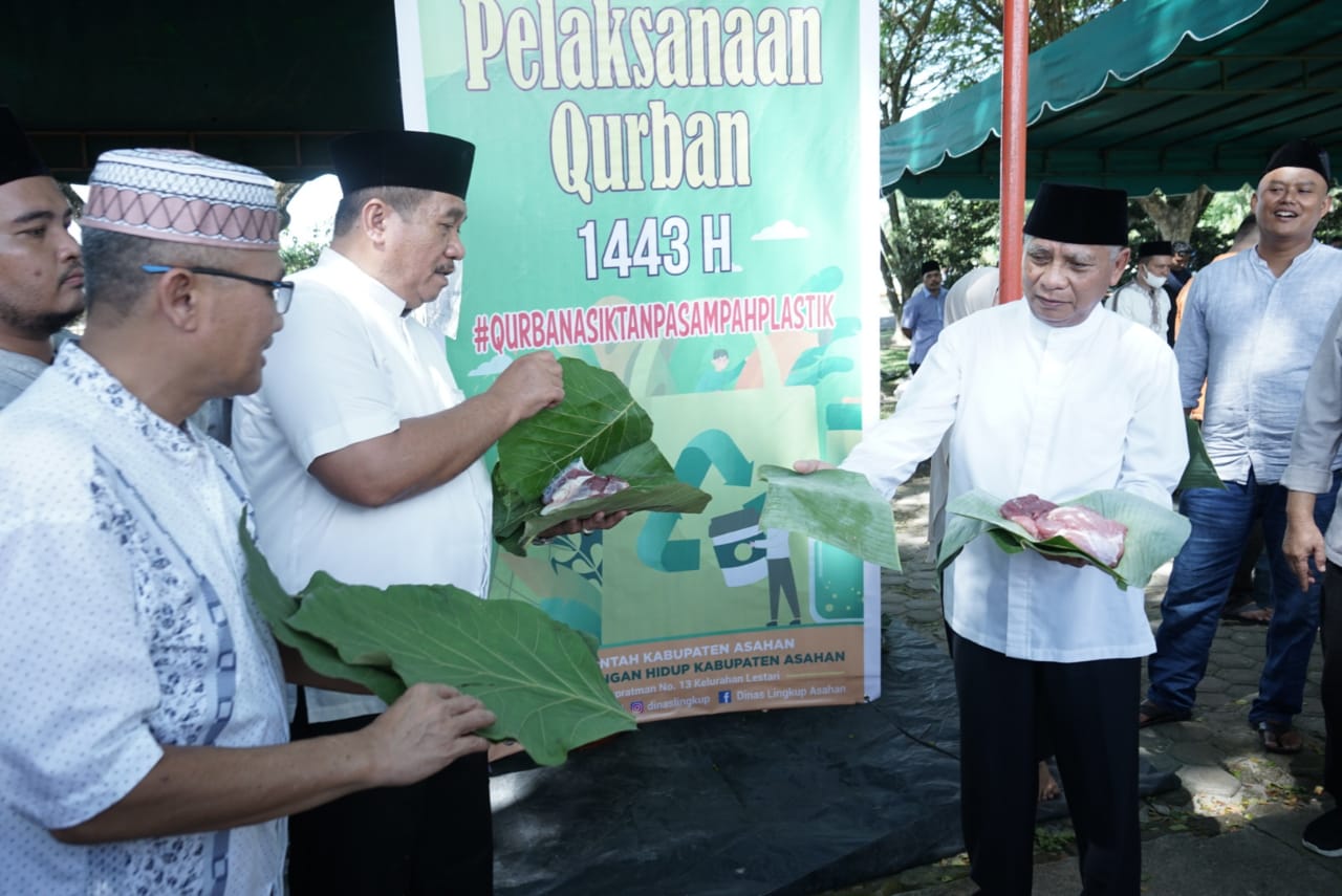 Sementara Bupati Asahan H. Surya BSc dalam kesempatan itu menyampaikan bahwa penggunaan media daun pisang dan jati atau pun sejenisnya untuk membungkus daging hewan qurban secara tidak langsung telah memberikan manfaat bagi masyarakat khususnya petani daun pisang dan jati atau sejenisnya untuk meningkatkan ekonominya pada moment Idul Adha ini.