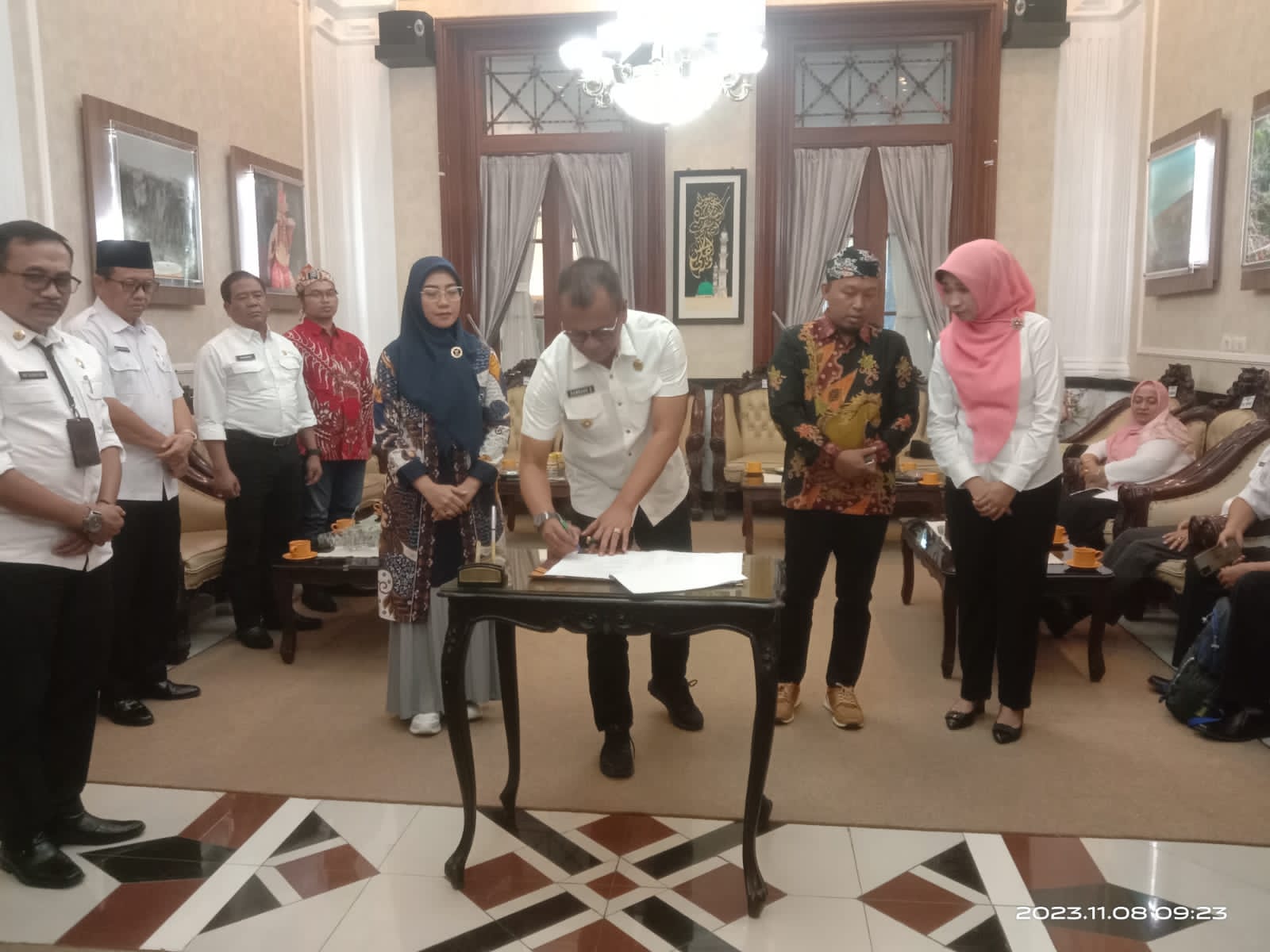 Dana hibah tersebut diserahkan secara simbolis oleh Pj Bupati Bondowoso, Drs. H. Bambang Soekwanto, MM Ketua KPU Kabupaten Bondowoso, Junaidi, SH Wahyudin dan Ketua Bawaslu Kabupaten Bondowoso, Nani Agustina, di Peringgitan Rumah Dinas Bupati, pada Rabu (8/10/2023).