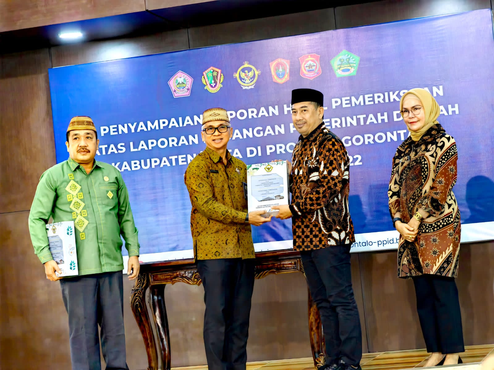 Penyerahan dokumen Laporan Hasil Pemeriksaan (LHP) atas Laporan Keuangan Pemerintah Daerah (LKPD) 2022 tersebut diserahkan langsung oleh Kepala BPK-RI Perwakilan Provinsi Gorontalo, Ahmad Luthfi Rahmatullah, S.E., M.H., Ak., CA., CSFA., kepada Bupati Bone Bolango Hamim Pou yang didampingi langsung Wakil Bupati Bone Bolango Merlan S. Uloli dan Ketua DPRD Kabupaten Bone Bolango Halid Tangahu, Rabu (17/5).