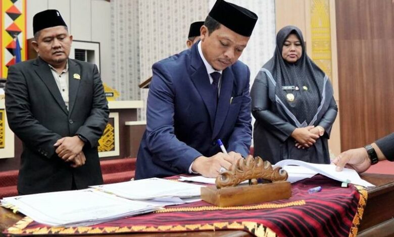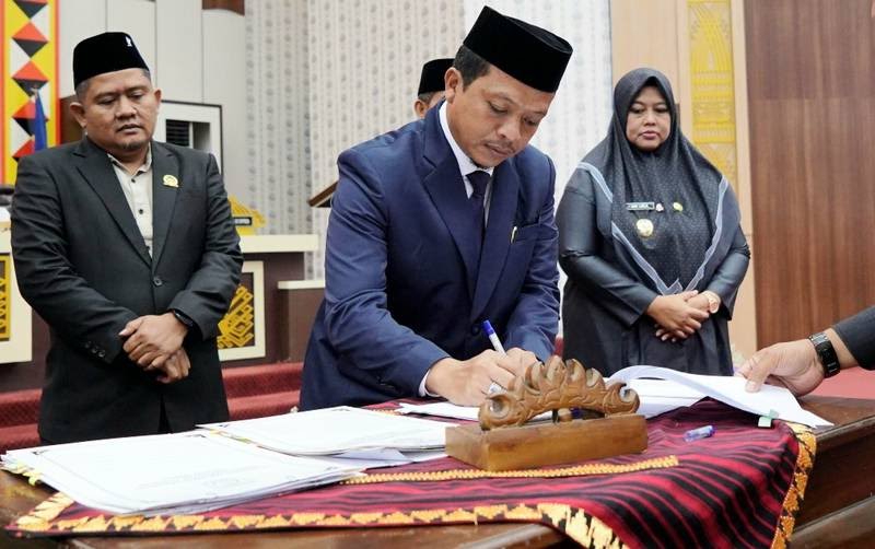 Penandatanganan dilakukan Bupati Pringsewu Riyanto Pamungkas bersama pimpinan DPRD dalam rapat paripurna di Gedung DPRD Pringsewu, Jumat (15/8/2025).