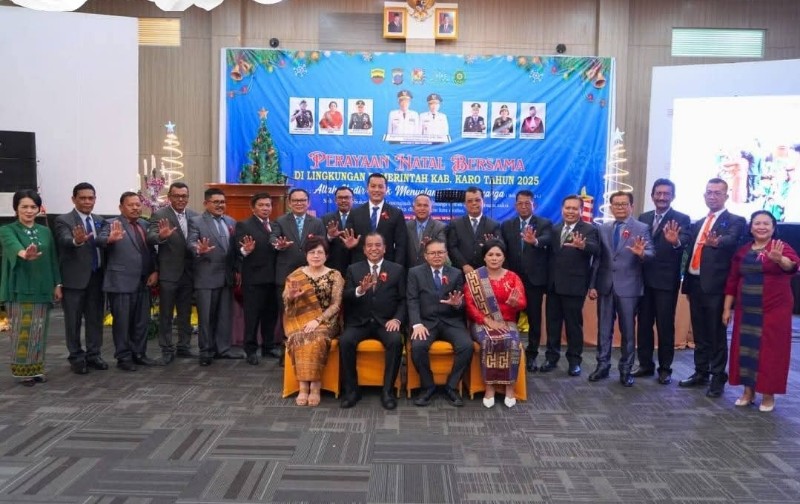 BeritaNasional.ID KABANJAHE, SUMUT —Pemerintah Kabupaten Karo mengadakan Perayaan Natal Bersama di Lingkungan Pemerintah Kabupaten Karo Tahun 2025 yang dilaksanakan di Sinabung Hills International Hotel, Senin (8/12/2025)