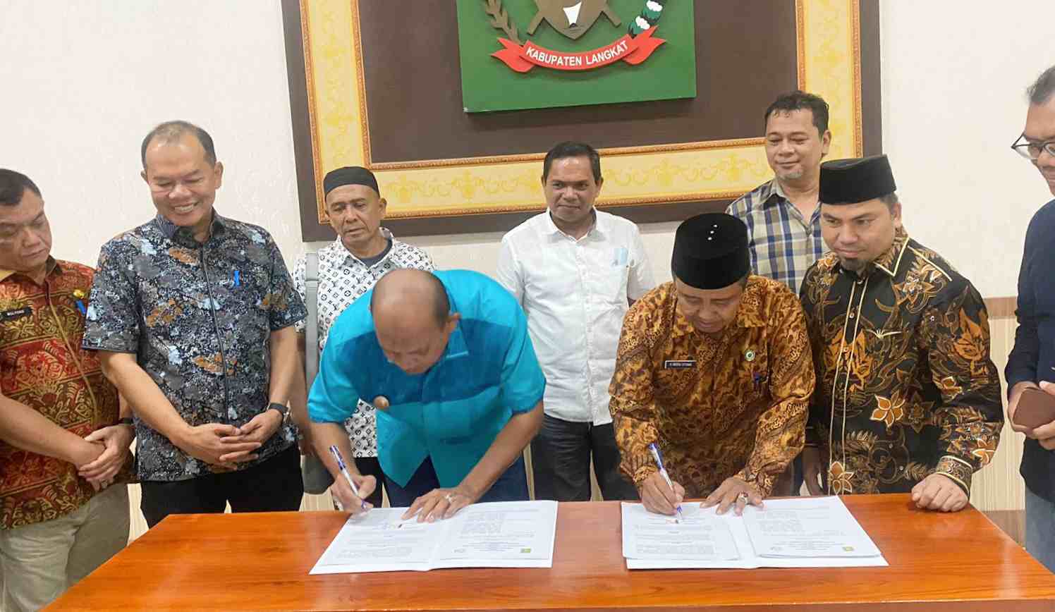 BeritaNasional.ID, LANGKAT SUMUT – Pelaksana tugas (Plt) Bupati Langkat H.Syah Afandin melakukan penandatanganan kesepakatan bersama antara Pemerintah Kabupaten Langkat dengan Dr.Indra Utama, selaku Ketua Koperasi Produsen Syariah Amanah Ulama (KPSAU) MUI Sumut, tentang pengelolaan sampah dan pemanfaatannya, bertempat di Rumah Dinas Bupati Langkat, Kamis (11/5/2023).