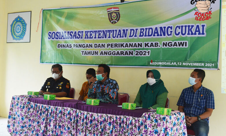 BeritaNasional.ID, Ngawi Untuk memberi pemahaman dan pengetahuan Pemeritah Kabupaten Ngawi melalui Dinias Pangan dan Perikanan menggelar sosialisasi peraturan perundang-undangan bidang cukai bagi Kelompok Tani, Kelompok Budidaya Ikan, Pelaku Pangan Segar, dan Pelaku usaha olahan pangan yang berlangsung di Aula Kecamatan Kedunggalar, Jumat (12/11/2021)