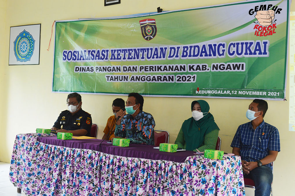 Sosialisasi tersebut dibuka langsung oleh Kepala Dinas Pangan dan Perikanan Kabupaten Ngawi Bonadi dengan menghadirkan narasumber dari Kepala Bae Cukai Madiun, Kepolisian Polres Ngawi dan Kejaksaan Ngawi