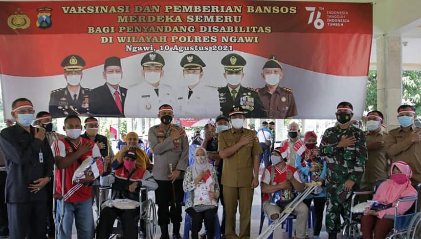 Pihak kepolisian menggelar Vaksinasi Merdeka Semeru menyasar penyandang disabilitas. Kegiatan serupa juga dilaksanakan serentak oleh jajaran Polres di wilayah kerja Polda Jawa Timur