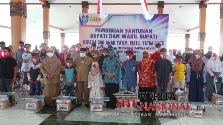 BeritaNasional.ID, SITUBONDO, JAWA TIMUR – Pemkab Situbondo memberikan santunan kepada 240 anak yatim piatu yang orang tuanya meninggal dunia karena Covid- 19 bertempat di Pendopo Kabupaten Situbondo, Selasa (19/10/2021).