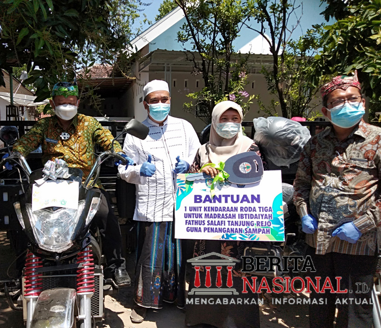 BeritaNasional.ID, SITUBONDO – Bupati Situbondo Drs. H. Karna Suswandi M.M. didampingi Ketua TP PKK Kabupaten Situbondo Hj. Juma’ati Karna Suswandi bersama Kepala Dinas Lingkungan Hidup (DLH) Kholil SP. MP menyerahkan bantuan alat transportasi pengangkut sampah berupa kendaraan roda tiga kepada 6 Pondok Pesantren bersumber dari Anggaran APBD Th 2021 yang bertempat di rumah H. Ismail, Desa Gebangan, Kecamatan Kapongan, Kabupaten Situbondo, Kamis(26/8/2021).