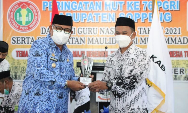 BeritaNasional.ID, SOPPENG – Pemerintah Kabupaten Soppeng mengadakan Peringatan Hari Ulang Tahun Persatuan Guru Republik Indonesia (PGRI) ke 76, dan Hari Guru Nasional (HGN) Tahun 2021 serta Peringatan Maulid Nabi Muahammad SAW.