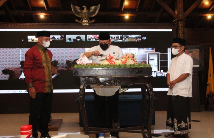 “Dalam ayat tersebut, apabila kita bersyukur, Alloh SWT akan menambah nikmat berkali lipat. Namun, jika kita tidak bersyukur, akan ada perhitungan di akhirat kelak. Sebab itu, jangan lupa bersyukur,” ucap Ahmad Farhan yang juga memimpin do’a yang diamini oleh para hadirin yang langsung hadir di Pendopo maupun yang hadir via zoom.