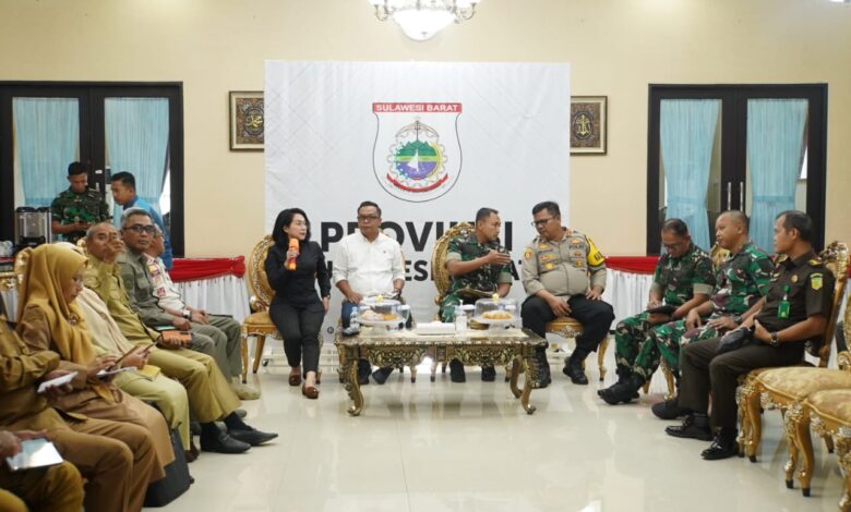 Rapat diikuti oleh Tenaga Ahli Gubernur Sulbar Munadir Mubarak dan Emeralda Ayu Kusuma, Korem 142/Tatag, Lanal Mamuju, Polda Sulbar, dan sejumlah pimpinan OPD Pemprov Sulbar di Rujab Gubernur Sulbar, berkoordinasi dengan tim pusat secara virtual di Rujab Gubernur Sulbar, Senin 20 Februari 2023.