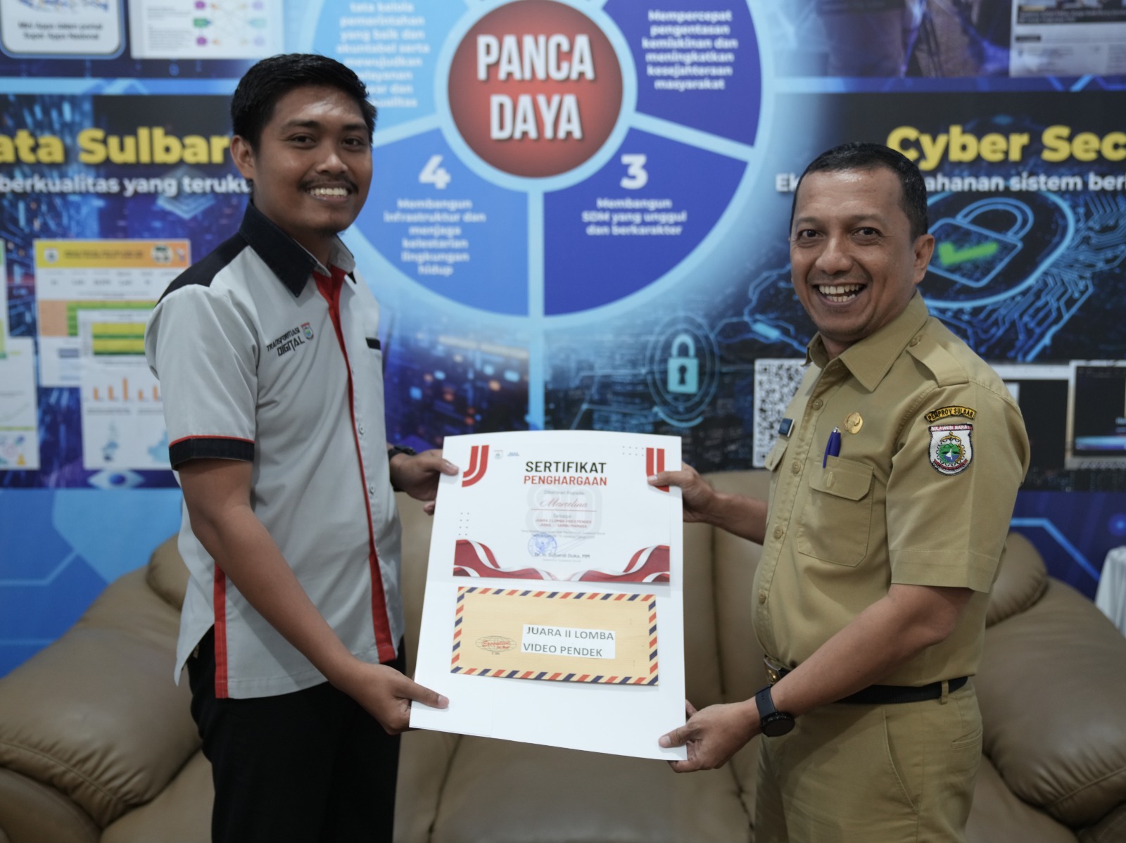 Prosesi penyerahan penghargaan berlangsung, Selasa 19 Agustus 2025, di Kantor Dinas Komunikasi, Informatika, Statistik dan Persandian (Kominfo SP) Sulbar. Pemberian penghargaan ini sebagai bentuk motivasi dan apresiasi dari Pemprov Sulbar kepada para pemenang lomba.