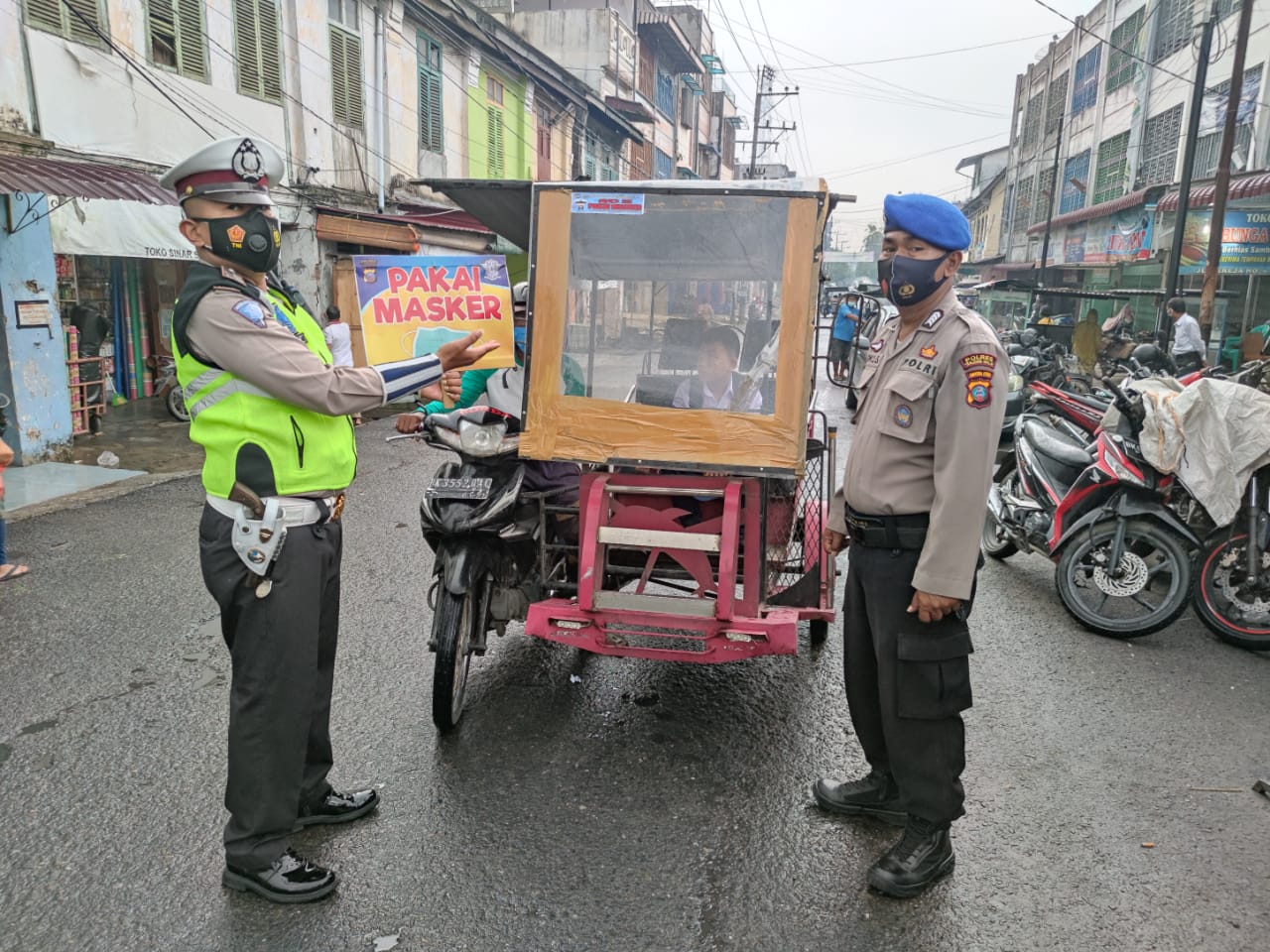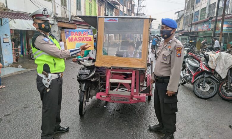 Penempelan Stiker “Ayo Pakai Masker” dilaksanakan Sat lantas Polres Tanjungbalai