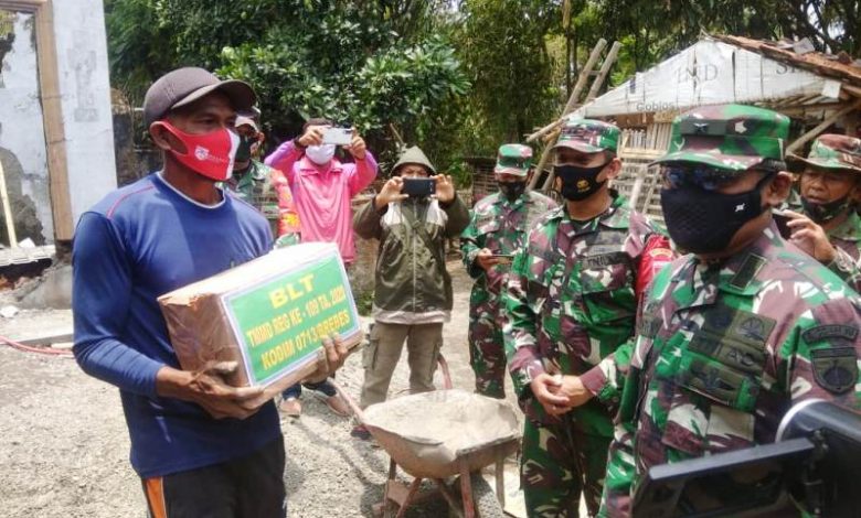 BeritaNasional.ID, Brebes – Disela-sela meninjau lokasi TMMD Reguler 109 Kodim 0713/Brebes, di Desa Kalinusu, Kecamatan Bumiayu, Kabupaten Brebes, Jawa tengah, Kepala Staf Kodam (Kasdam) IV/Diponegoro, Brigjen TNI Widi Prasetijono, memberikan paket sembako kepada 5 orang penerima rehab RTLH (Rumah Tidak Layak Huni) program TMMD Reguler senilai Rp. 10 juta untuk setiap rumah, Selasa (13/10/2020).