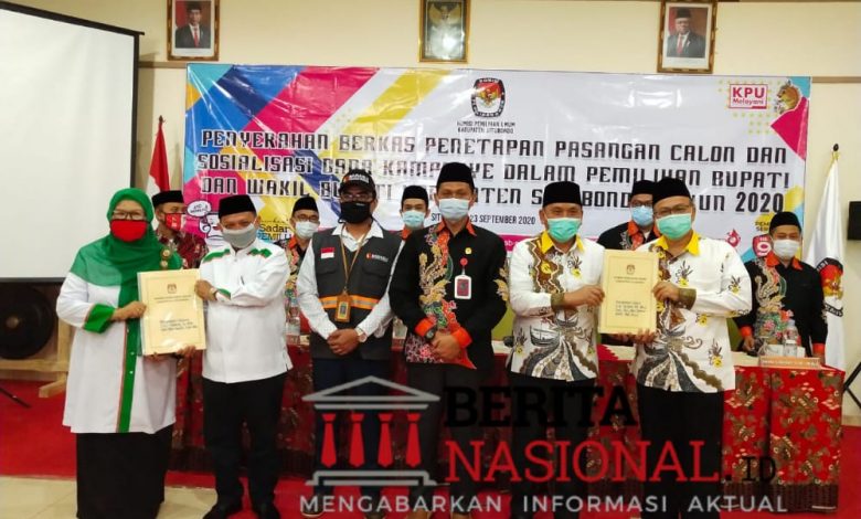 BeritaNasional.ID, SITUBONDO– Komisi Pemilihan Umum (KPU) Kabupaten Situbondo resmi menetapkan Pasangan Calon Bupati dan Wakil Bupati Situbondo Drs. H. Karna Suswandi MM-Ny. Hj. Khoirani, SPd, MH dan Ir. H. Yoyok Mulyadi MSi – Drs. H. Abu Bakar Abdi, Apt, MSi, Rabu (23/9/2020).